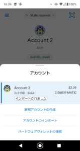 先ほどは「Ethereum Main Network」と表示されていたところが「Matic Mainnet」に変わればOKです。